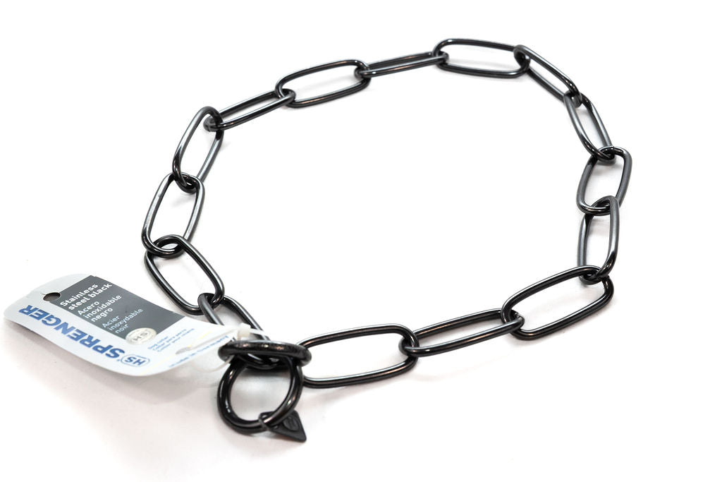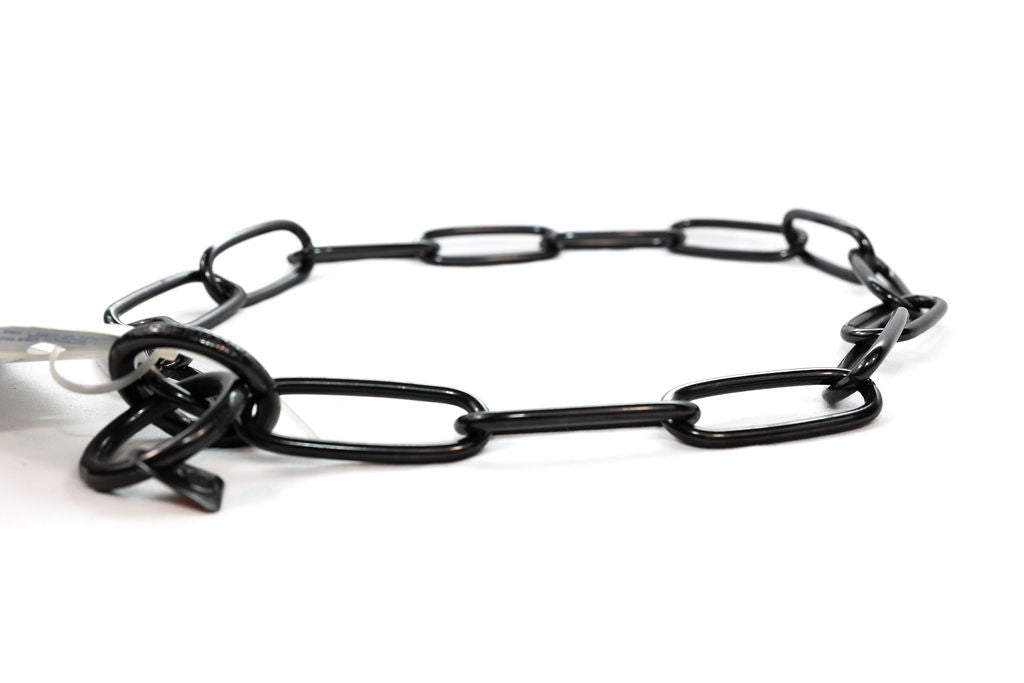 Perfect for training, walking, or obedience work, the Black Stainless Steel Long Link Fur Saver Collar offers the ideal balance of comfort, functionality, and safety, making it an essential tool in any dog training program.